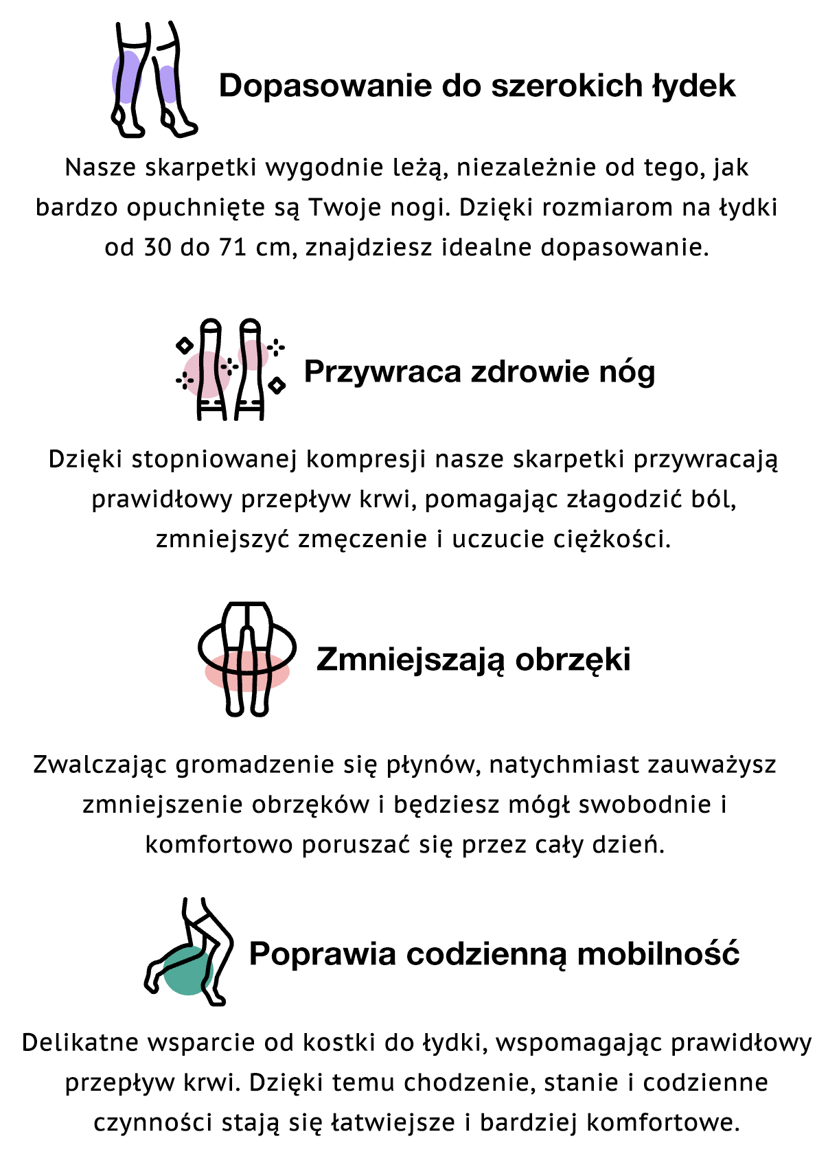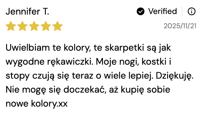 Załóż je rano i poczuj ulgę — przylegają, ale nie uciskają, dzięki czemu odczuwasz mniej bólu, mniejszy obrzęk i więcej energii przez cały dzień.
