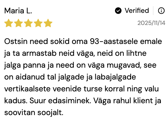 Meie disainitud kompressioonsokid on just sellised, mida sa kanda ootad. Erinevalt teistest, mis ebamugavustunnet süvendavad, tunduvad meie omad nagu rahustav kallistus – ideaalsed tursete, veenilaiendite ja muu korral.